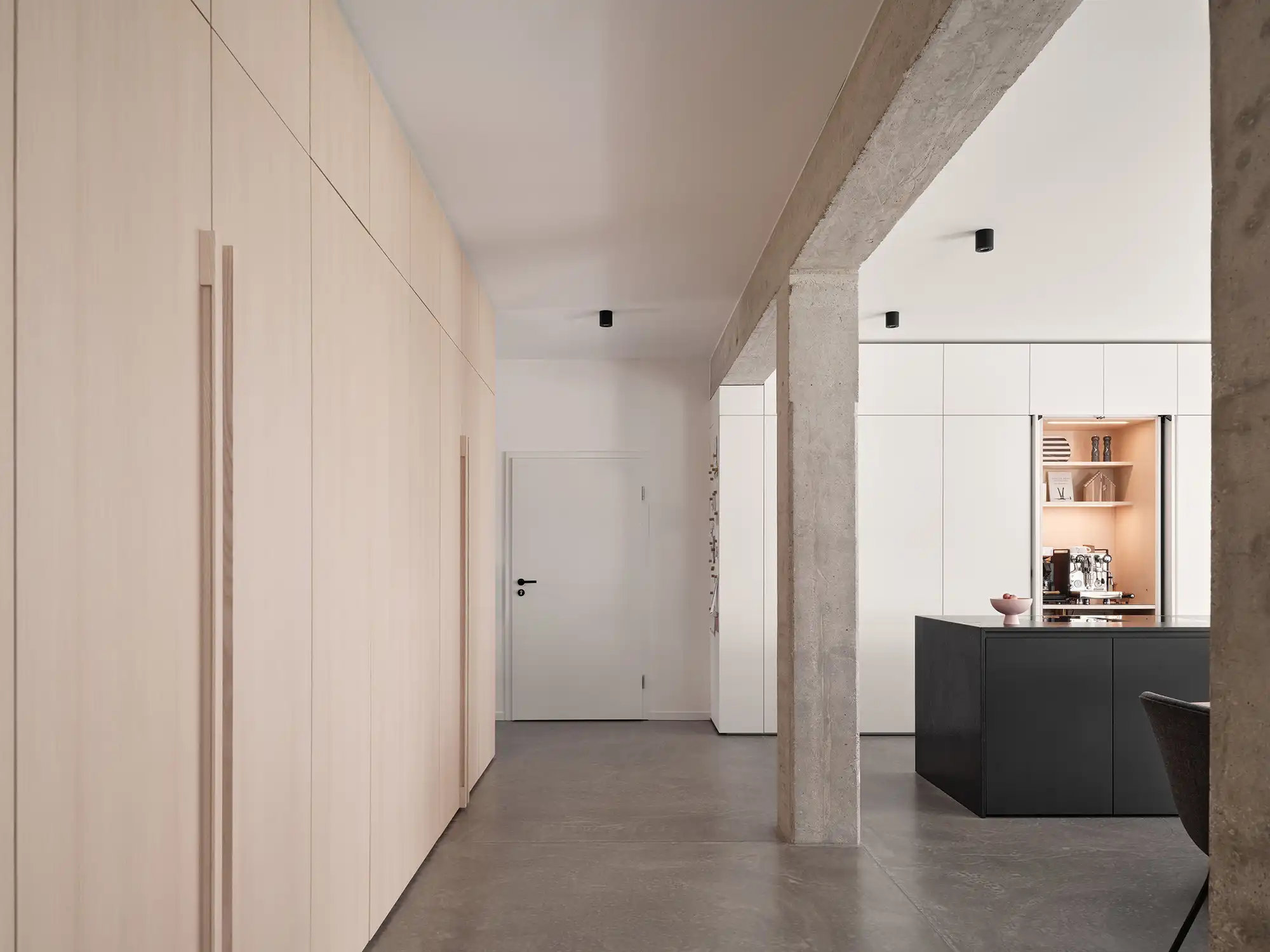 Im Zuge des Umbaus eines Mehrfamilienhauses in ein großzügiges Einfamilienhaus mit Loftcharakter wurde ein hochwertiges Innenraum Konzept mit großflächigen Stauraummöbeln entwickelt.